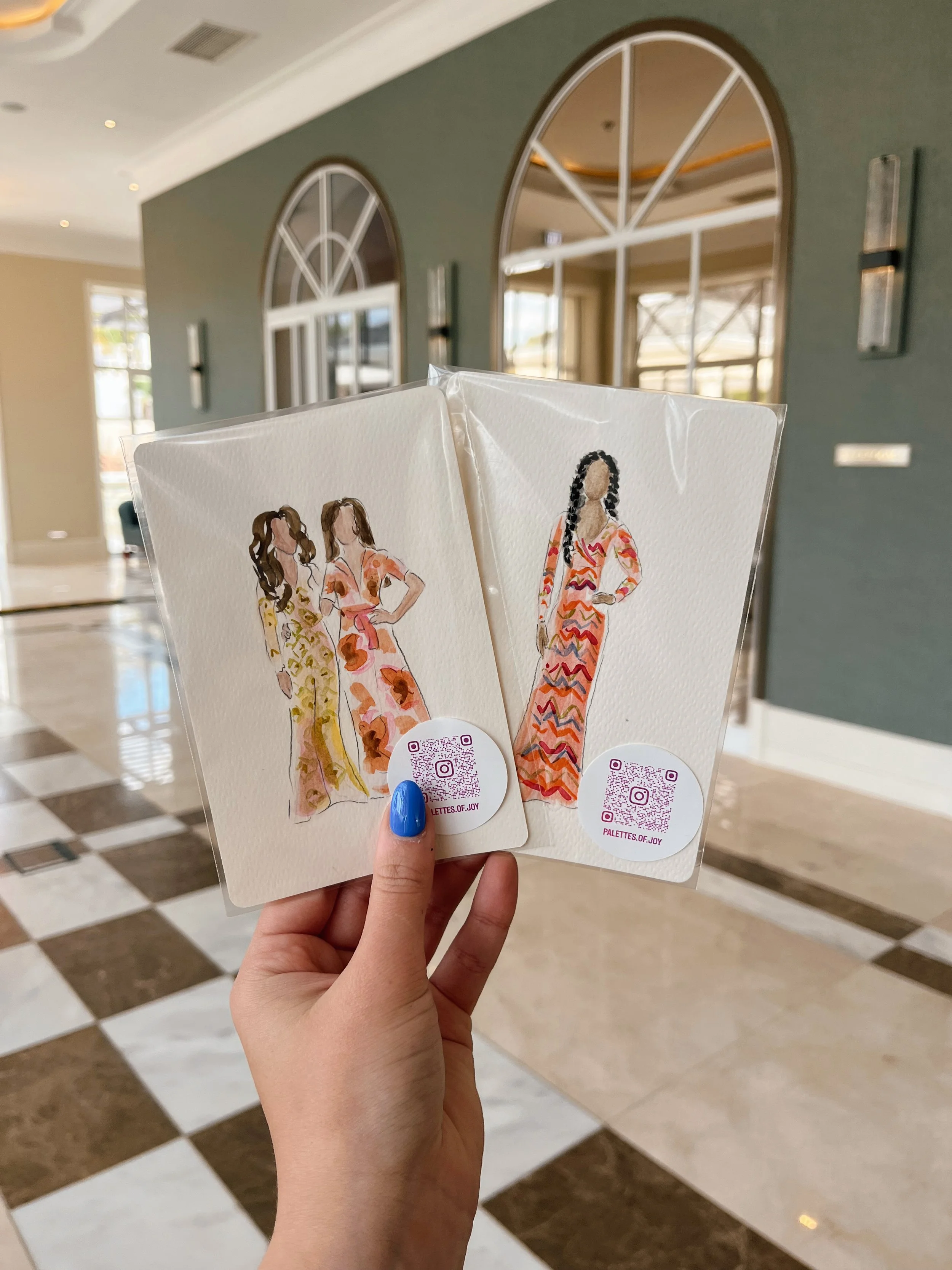 Guests can pick up their finished portraits throughout the course of the event. All remaining portraits not collected will be left on the table set out.